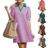 Paket beinhaltet: 1 * Lässiges gestreiftes Damenkleid mit V-Ausschnitt