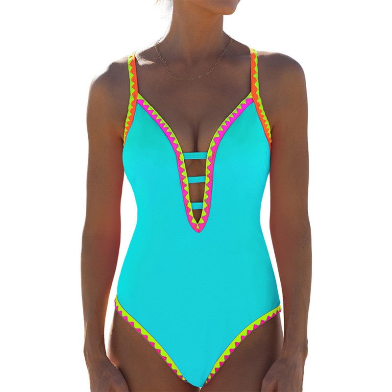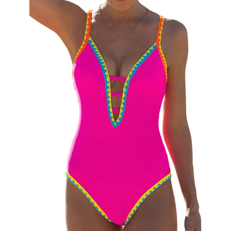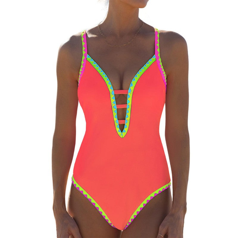 Glamouröser, farbenfroher einteiliger Badeanzug mit Spaghettiträgern für Damen