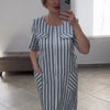 Lieferumfang: 1 x Modisches Damenkleid in lockerer Passform mit Rundhalsausschnitt, Streifenmuster und Taschen