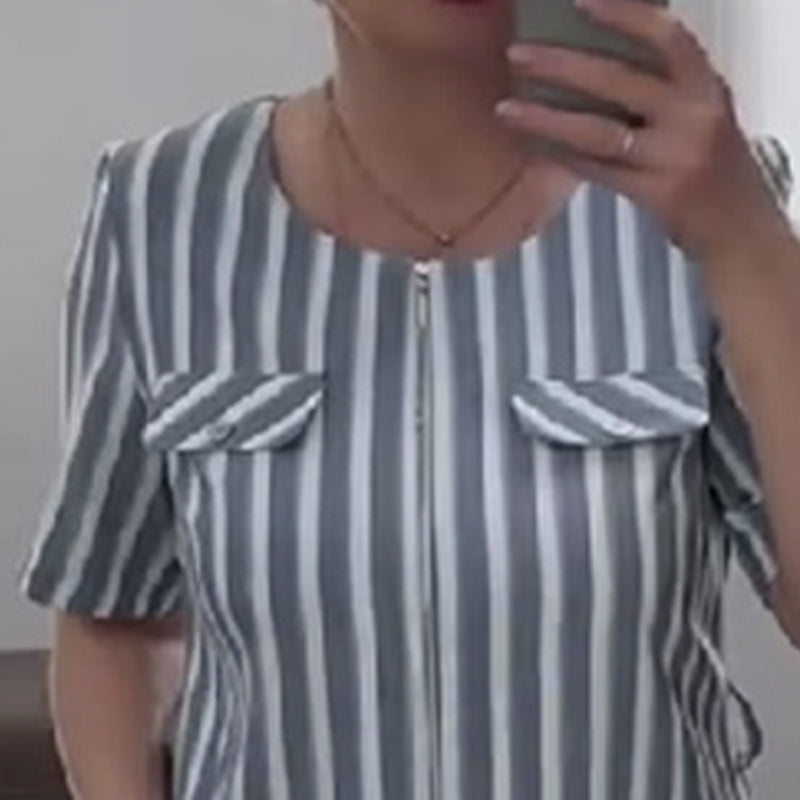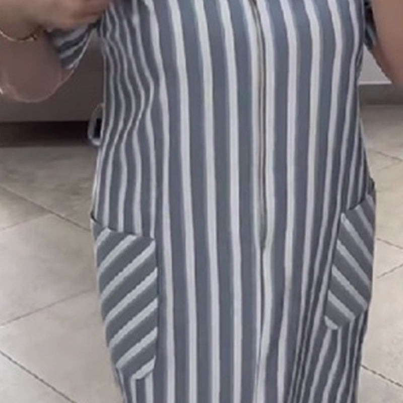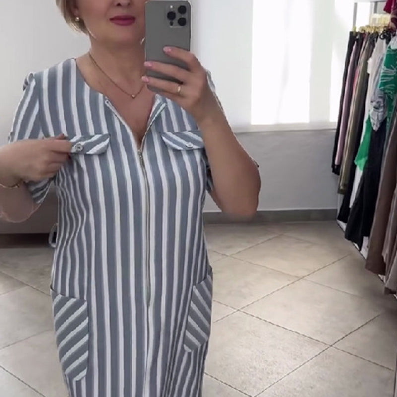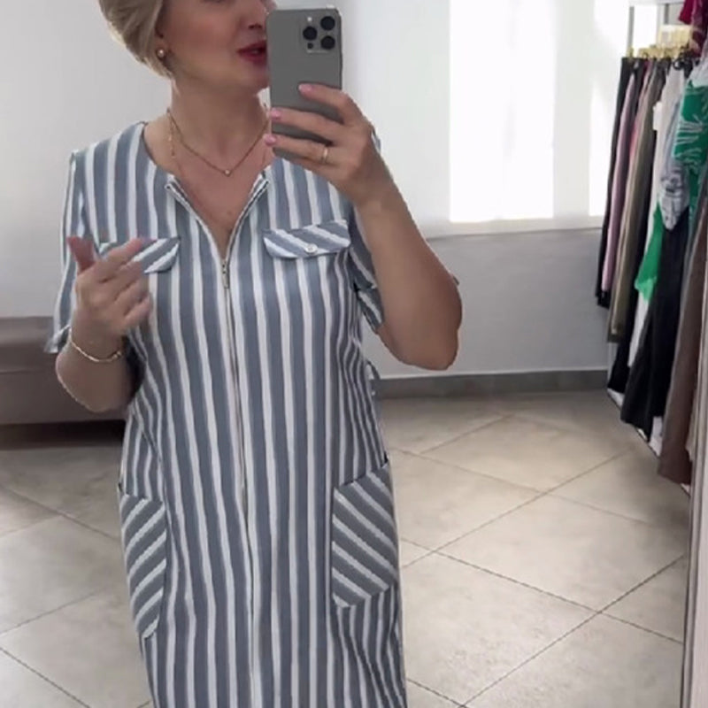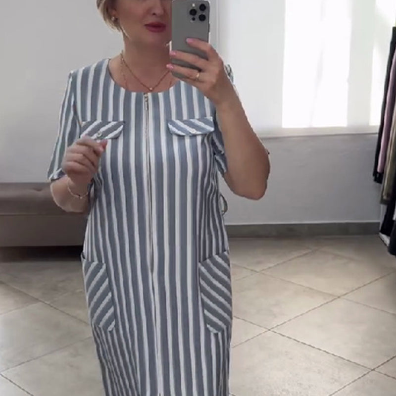 Modisches Damenkleid in lockerer Passform mit Rundhalsausschnitt, Streifenmuster und Taschen