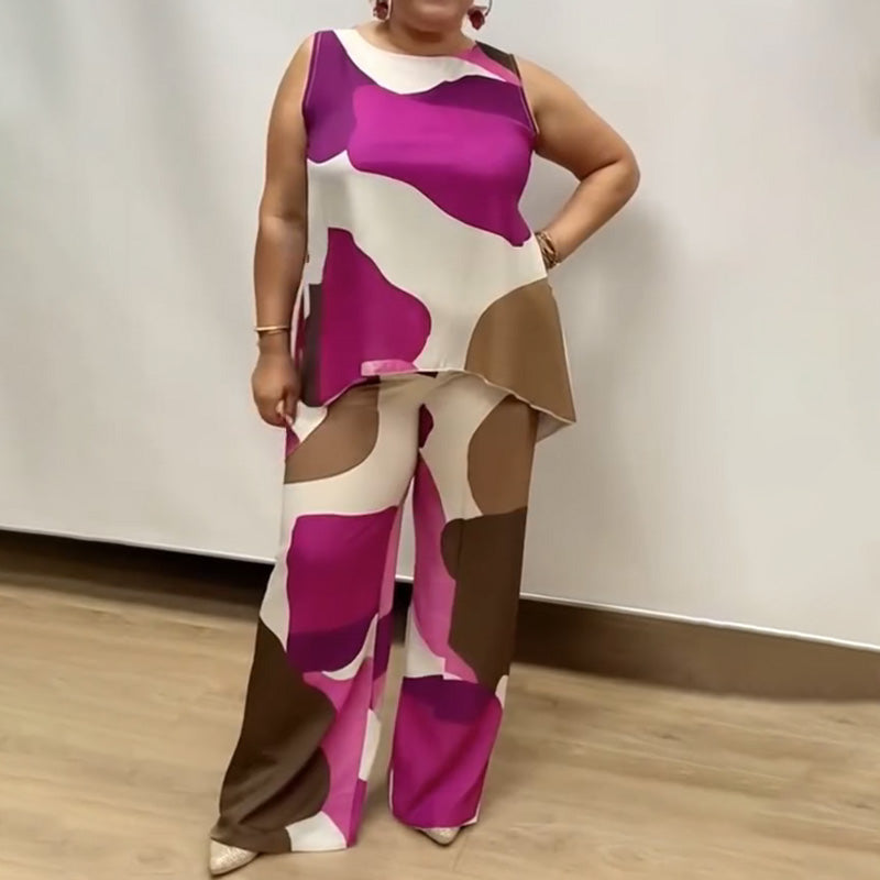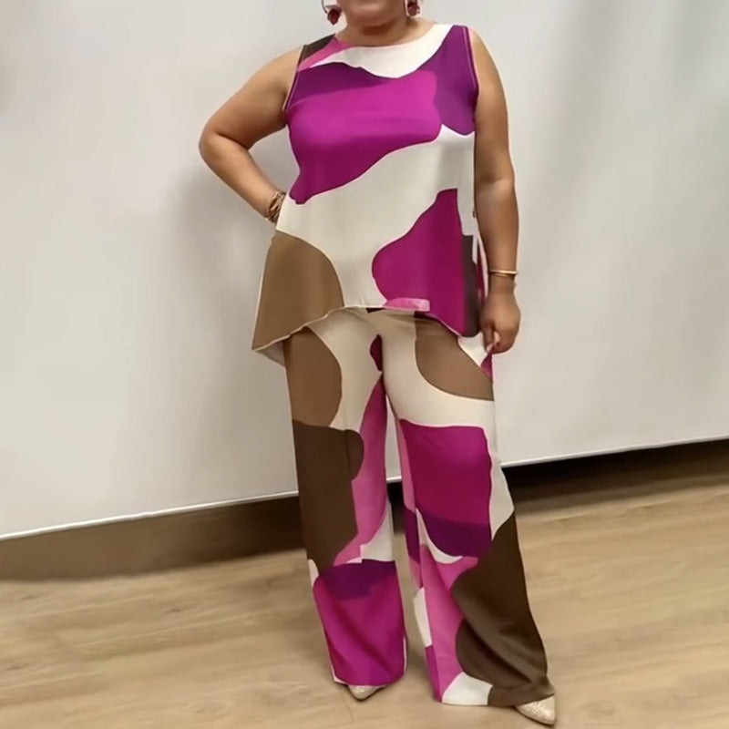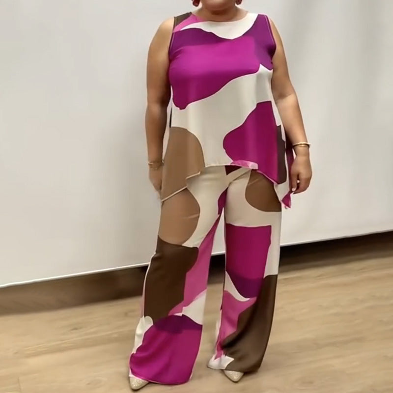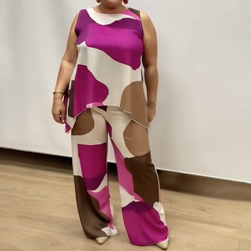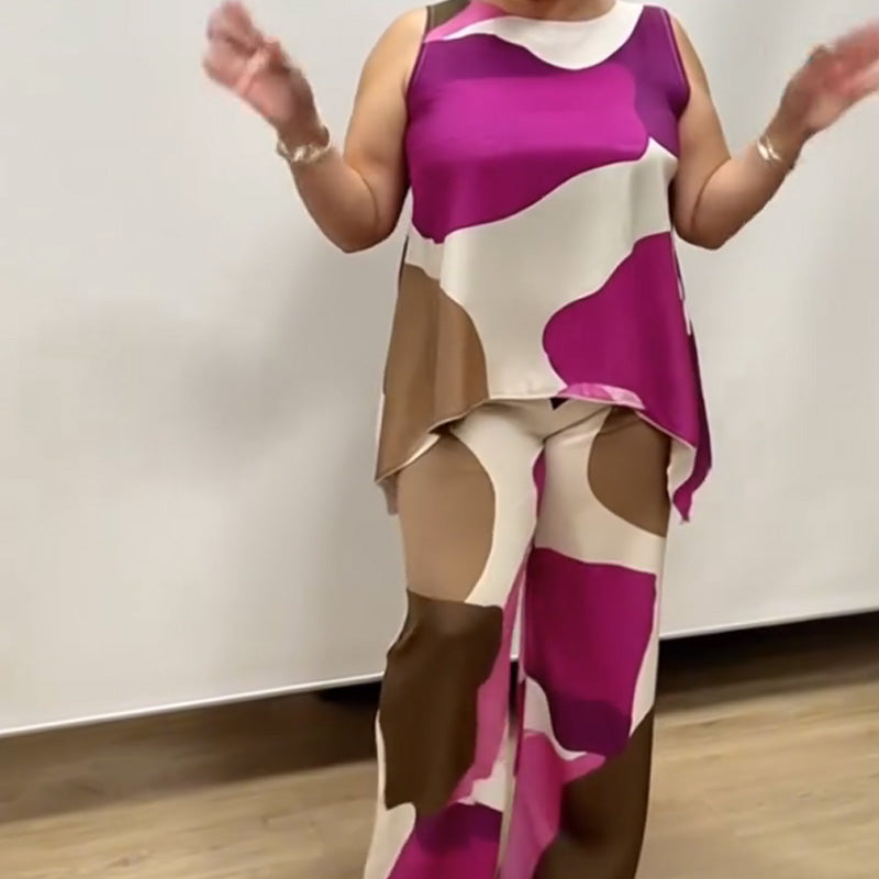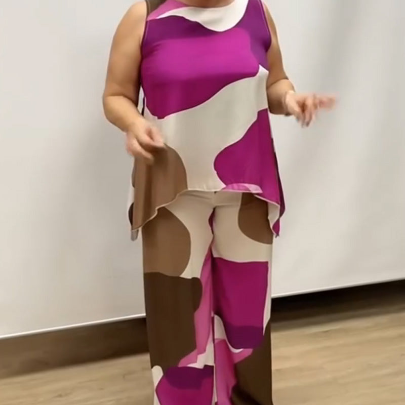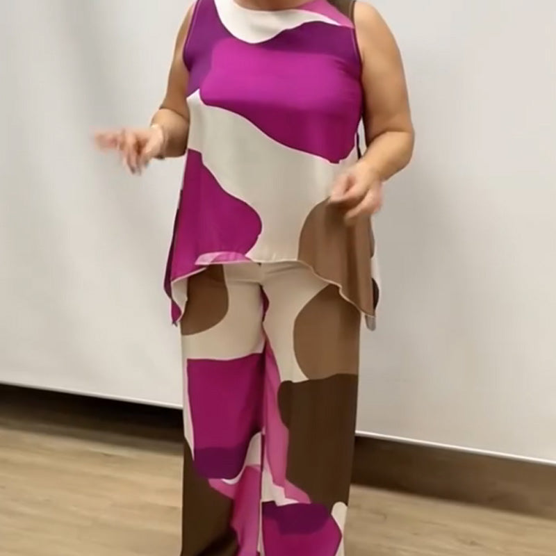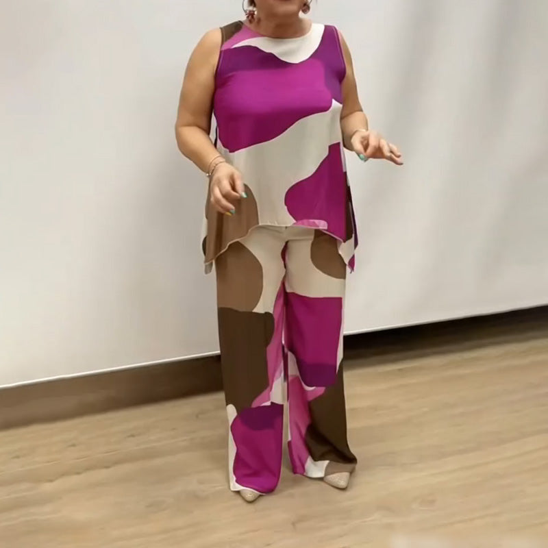 Paket beinhaltet: 1 * Lockerer, ärmelloser, bedruckter zweiteiliger Anzug mit Rundhalsausschnitt für Damen