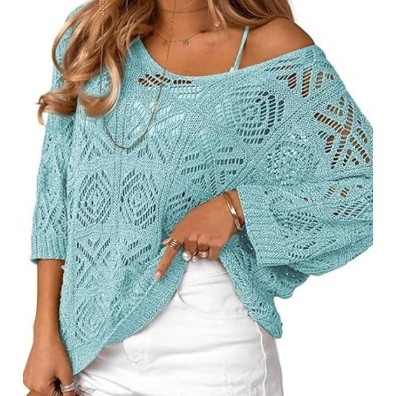 Atmungsaktives, durchbrochenes Design – Das aufwendige Häkelmuster zeichnet sich durch strategische, durchbrochene Details aus, die eine optimale Luftzirkulation ermöglichen und gleichzeitig die Abdeckung gewährleisten. Perfekt, um bei warmem Wetter kühl zu bleiben, ohne auf Stil oder Bescheidenheit verzichten zu müssen.
