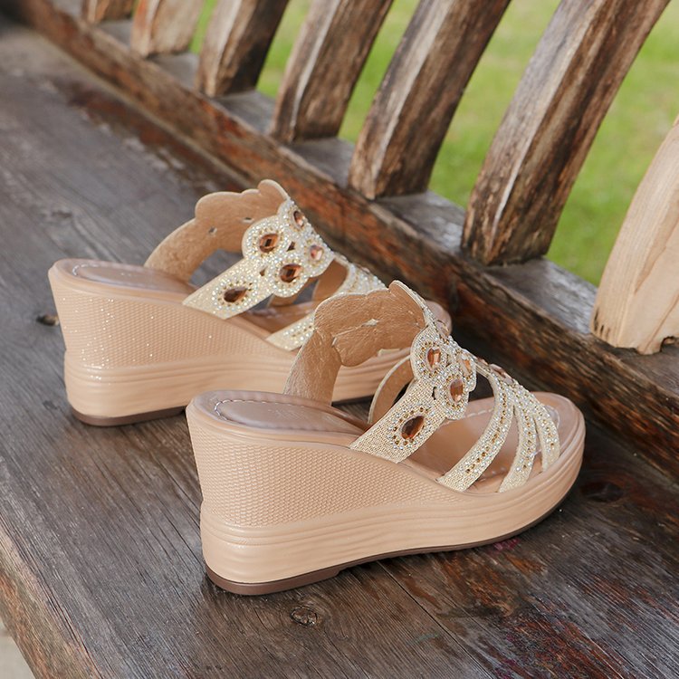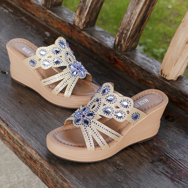 Damen-Hausschuhe im Bohemian-Stil mit offener Spitze und Pailletten