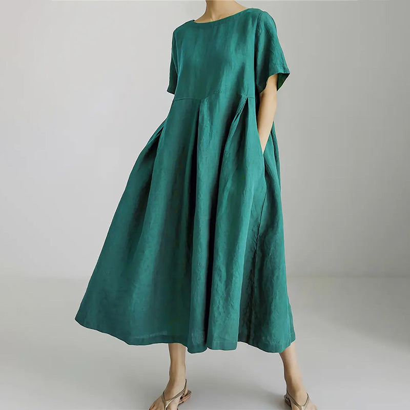 Lässiges Damenkleid mit lockerer Passform, Rundhalsausschnitt und Taschen