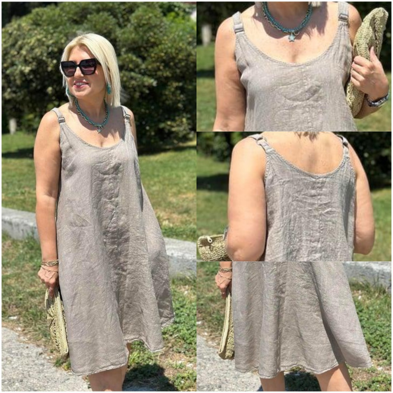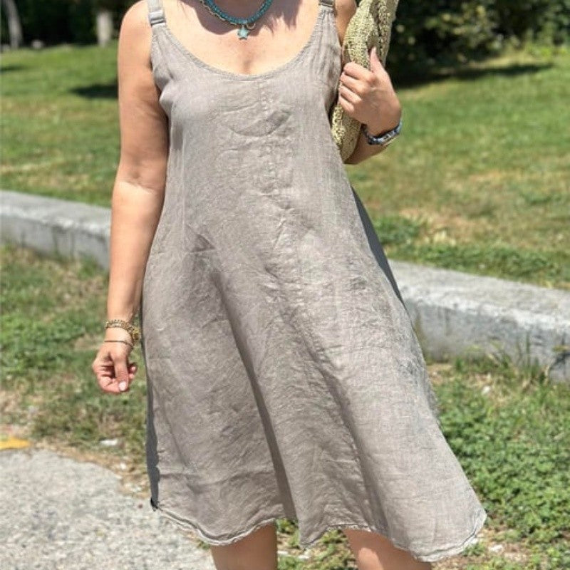 Lässiges ärmelloses Damenkleid mit Rundhalsausschnitt