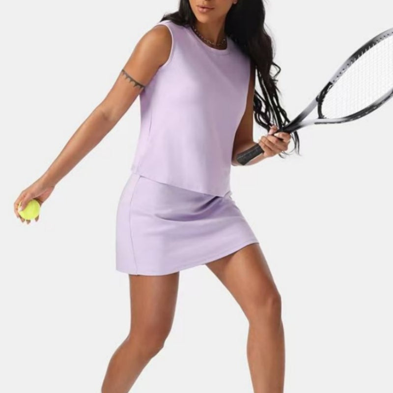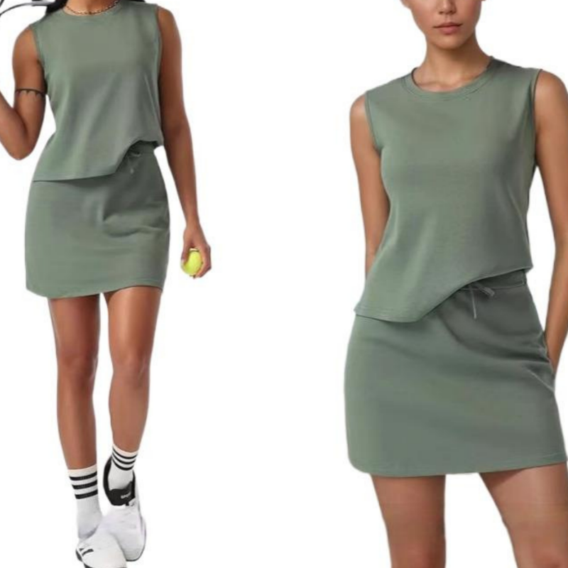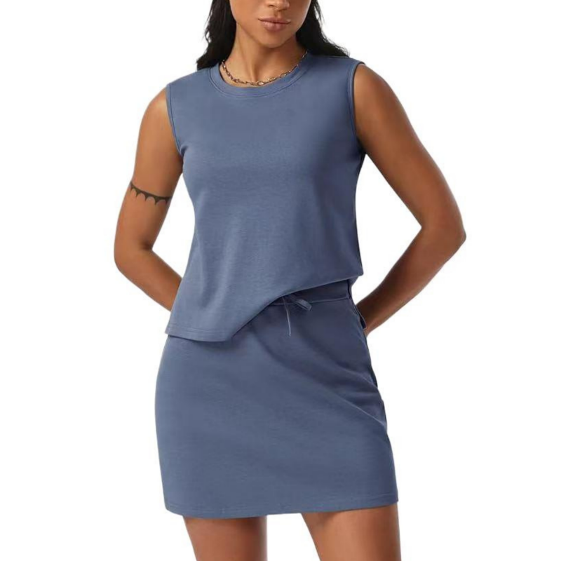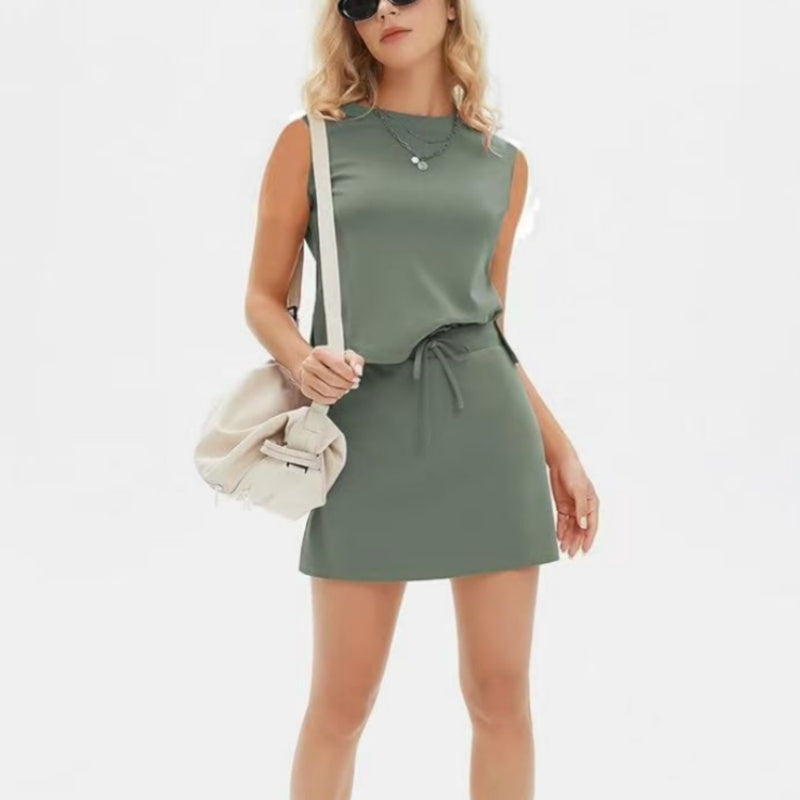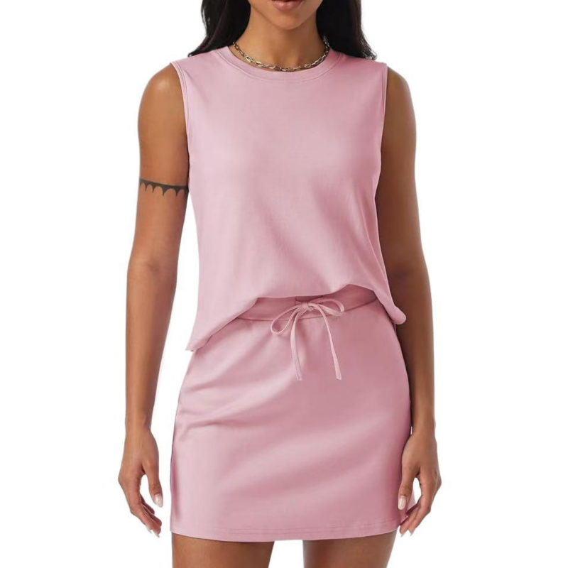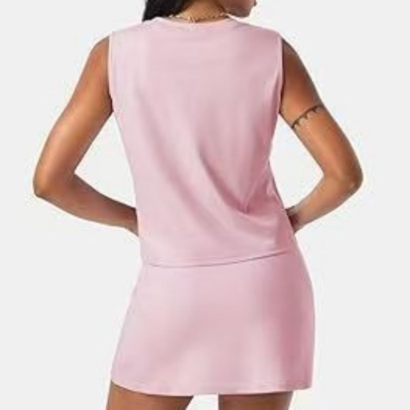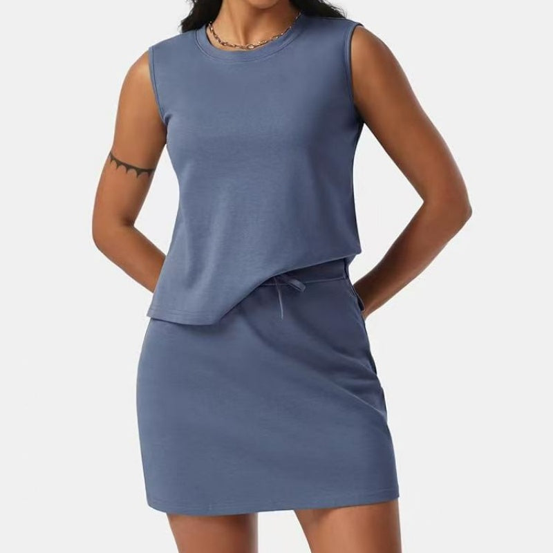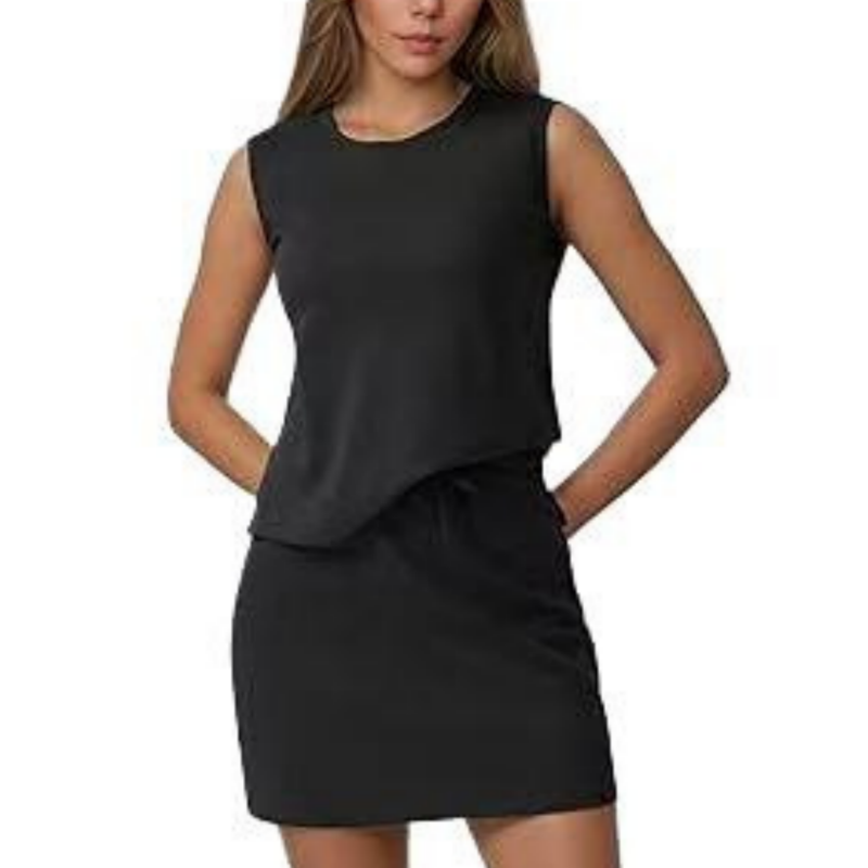 Lässiges, ärmelloses Damen-Zweiteilerset aus Oberteil und Rock