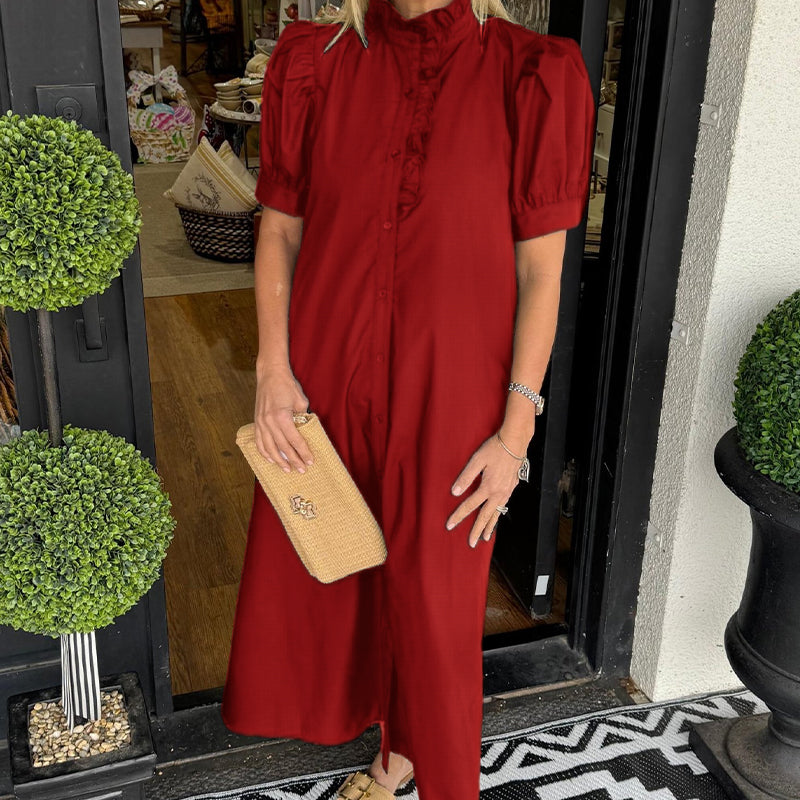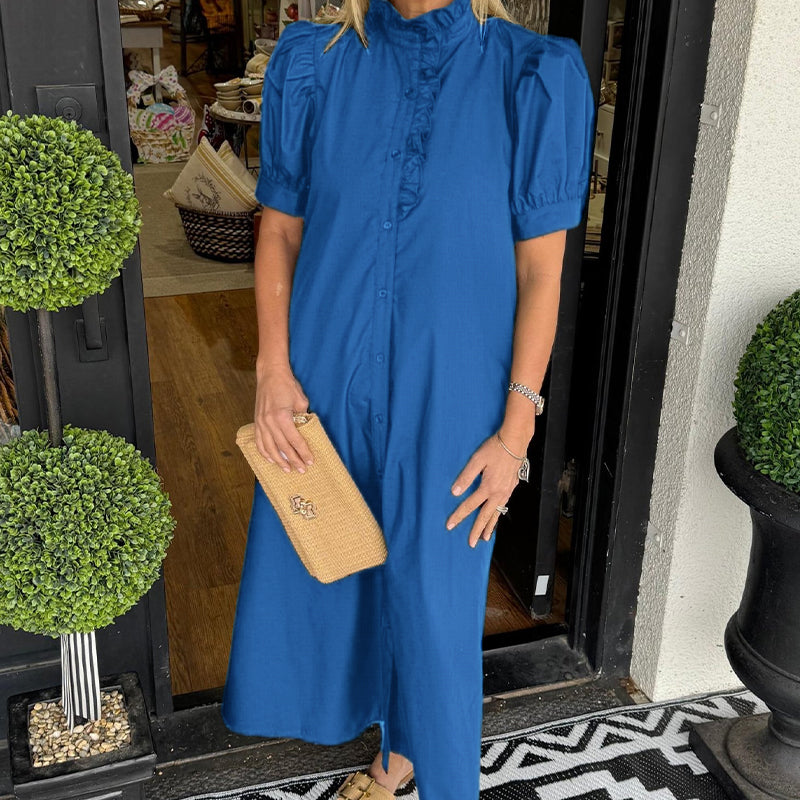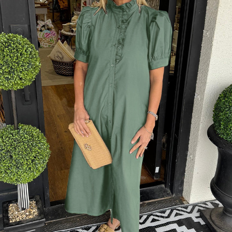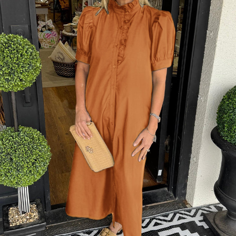 Lässiges, einfarbiges Kleid mit Stehkragen und Knopfleiste für Damen