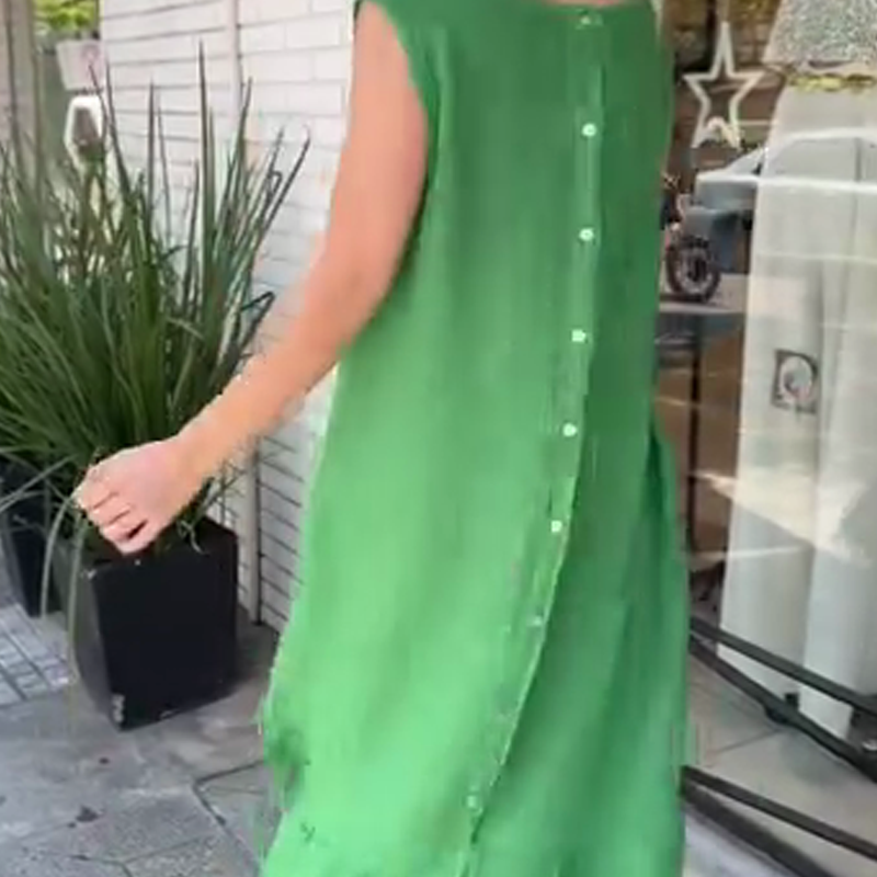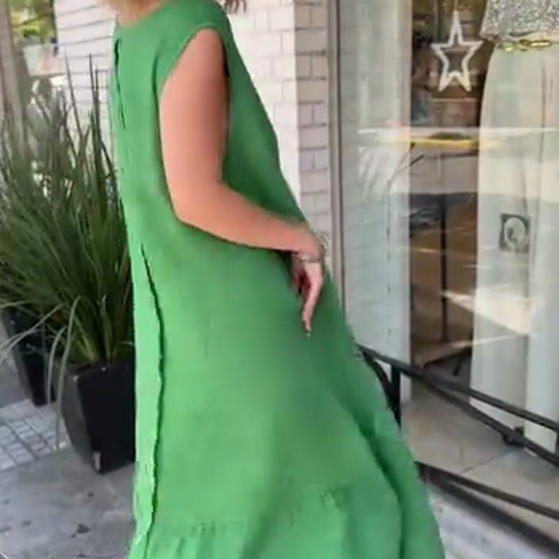 Lässiges, einfarbiges, ärmelloses, langes Kleid mit Rundhalsausschnitt für Damen
