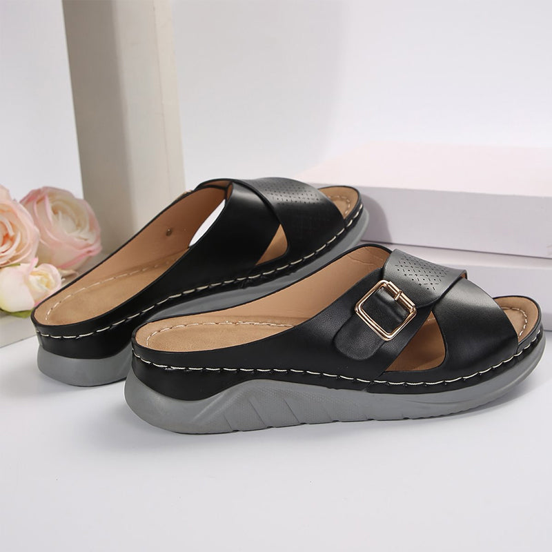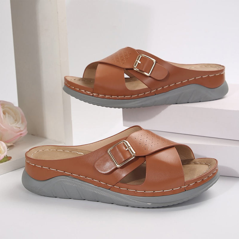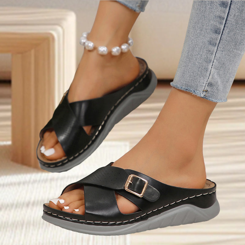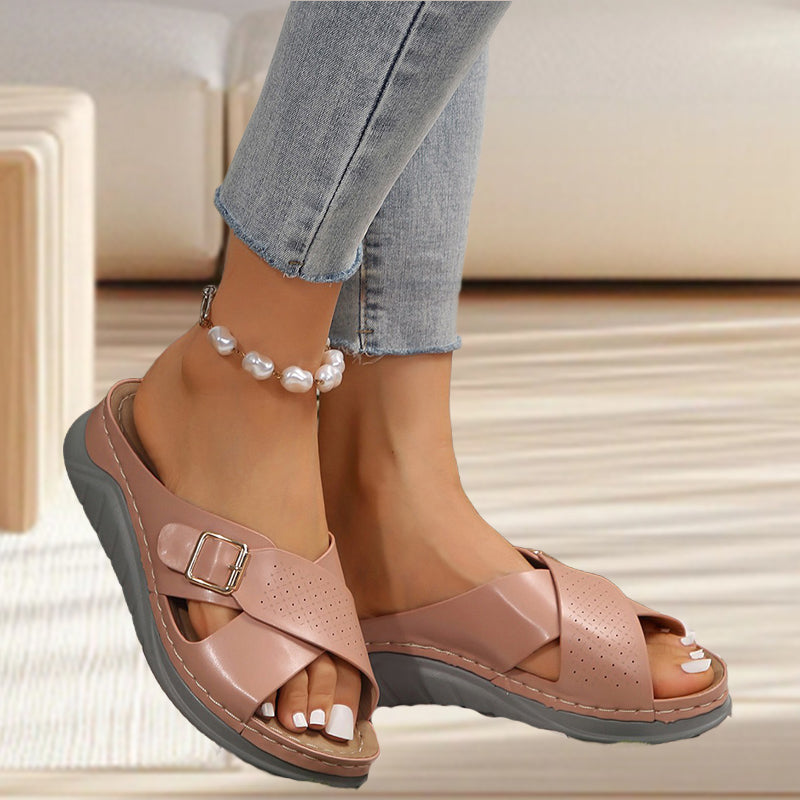 Einfarbige Strandpantoffeln mit gekreuzter Gürtelschnalle für Damen