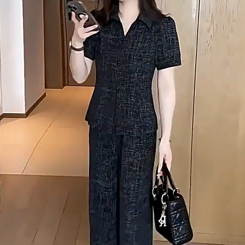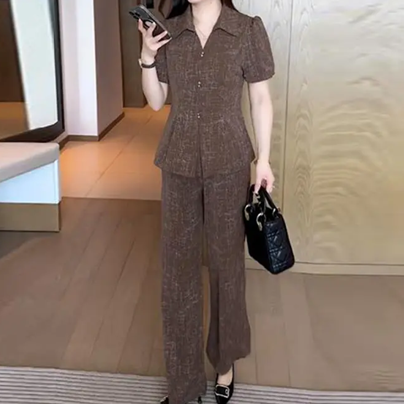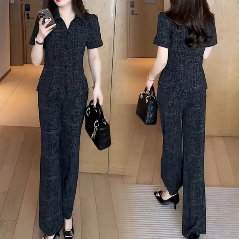 Lieferumfang: 1 * Eleganter Damen-Zweiteiler mit Kurzarm-Top und weiter Hose