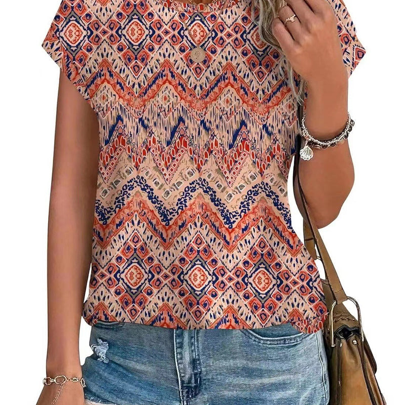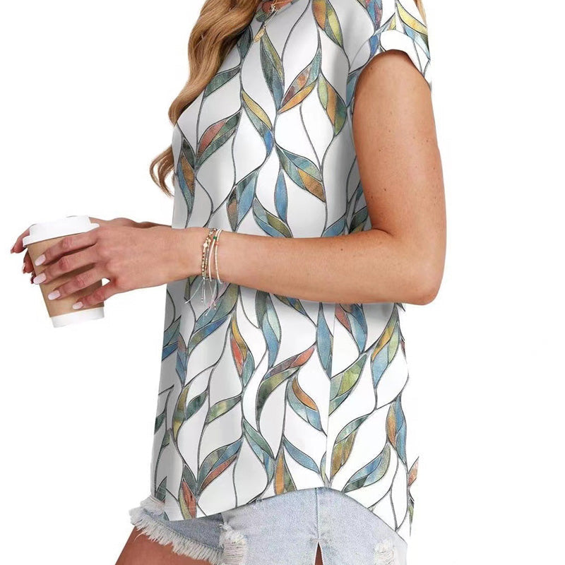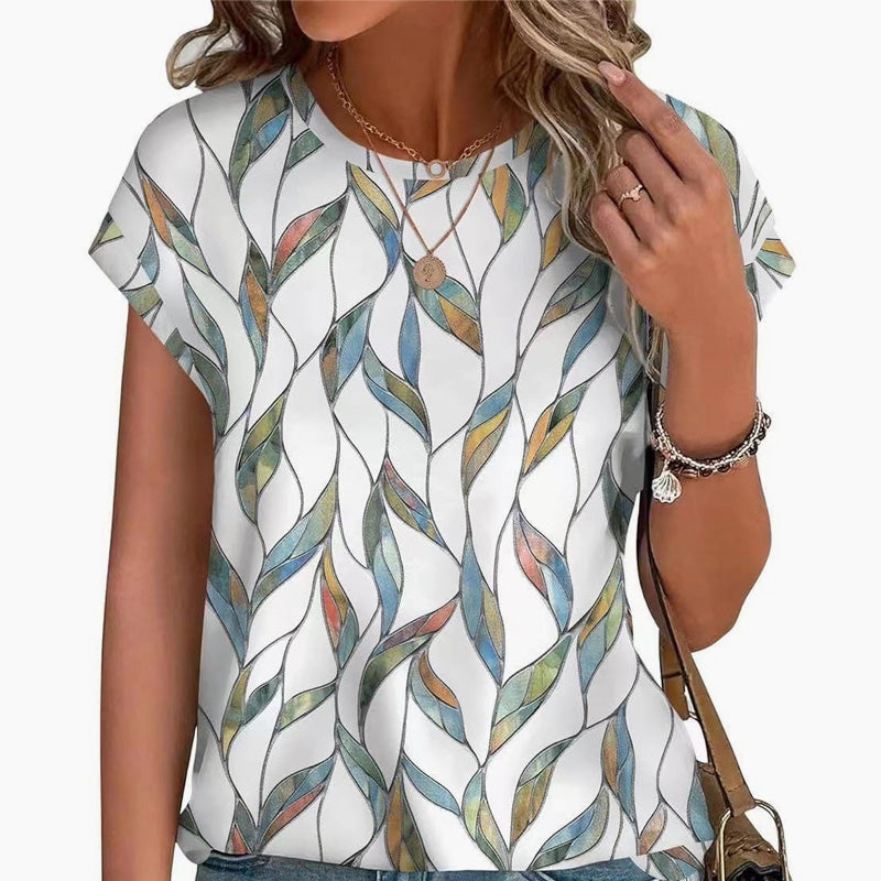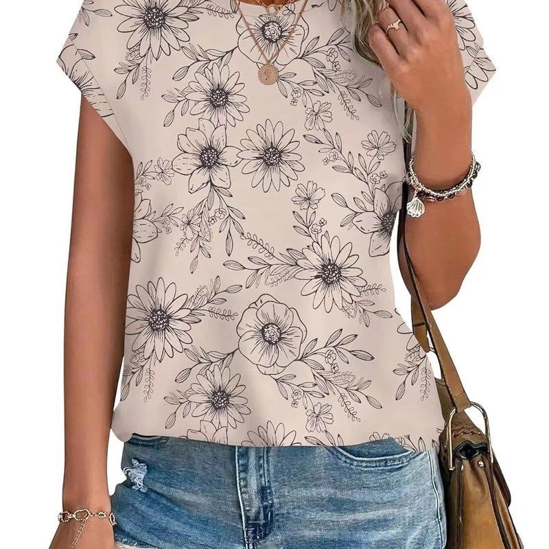 Modisches bedrucktes T-Shirt mit Rundhalsausschnitt und kurzen Ärmeln für Damen