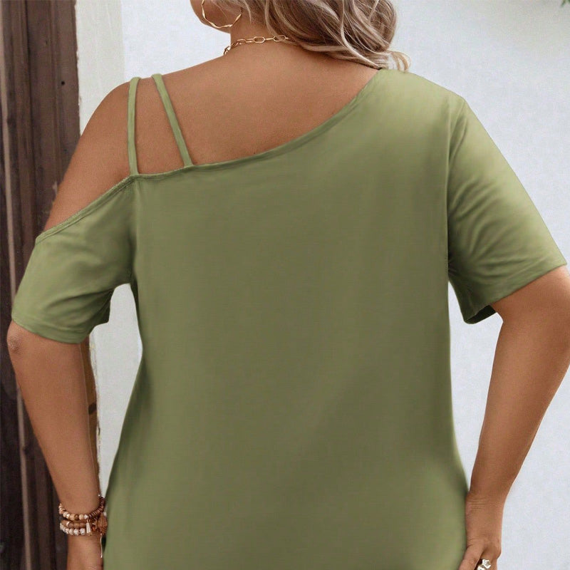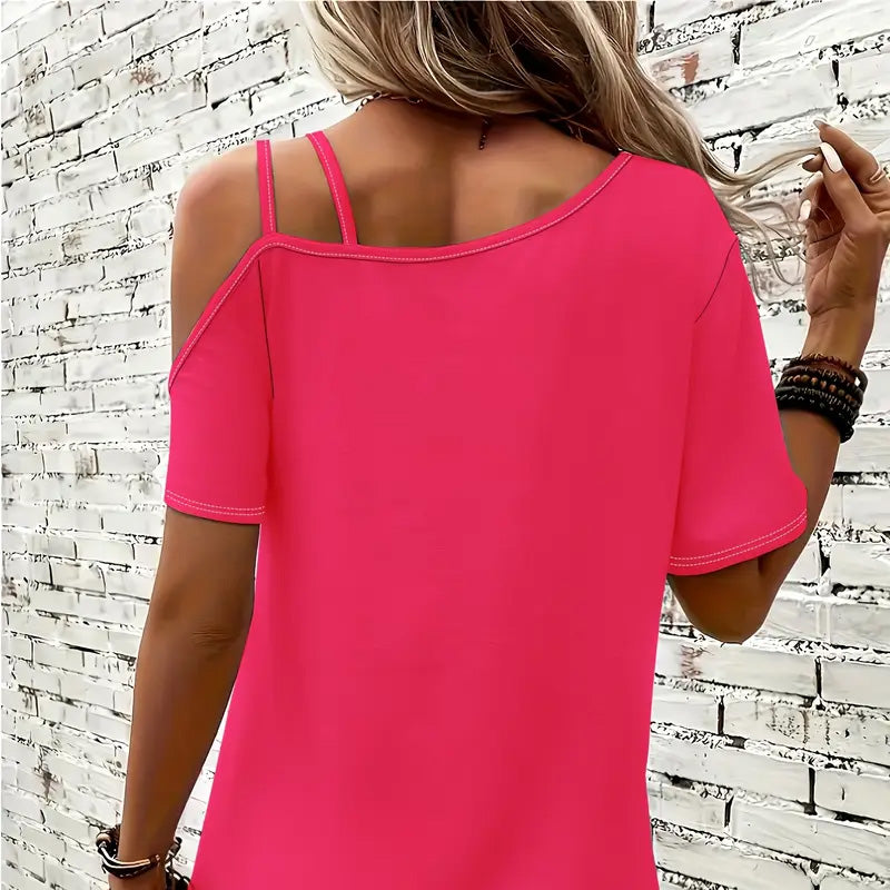 EINZIGARTIGES DESIGN: Verfügt über einen trendigen schulterfreien Stil mit asymmetrischem Schnitt – eine Seite hat klassische kurze Ärmel, die andere eine schicke freiliegende Schulter mit zwei Trägern, wodurch eine modische Silhouette entsteht.