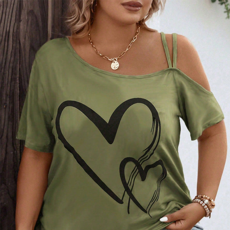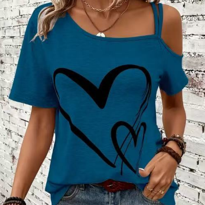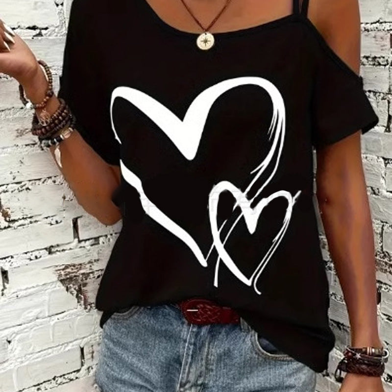 Paket beinhaltet: 1 * Damen-Oberteil mit Herz-Print, kurzen Ärmeln und schulterfrei