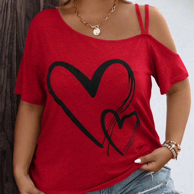Kurzarm-Off-Shoulder-Tops mit Herz-Print für Damen