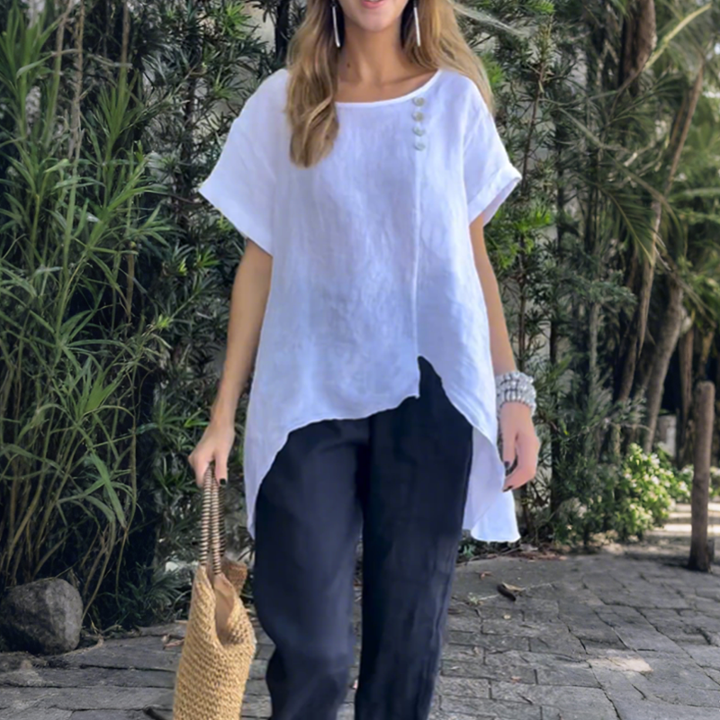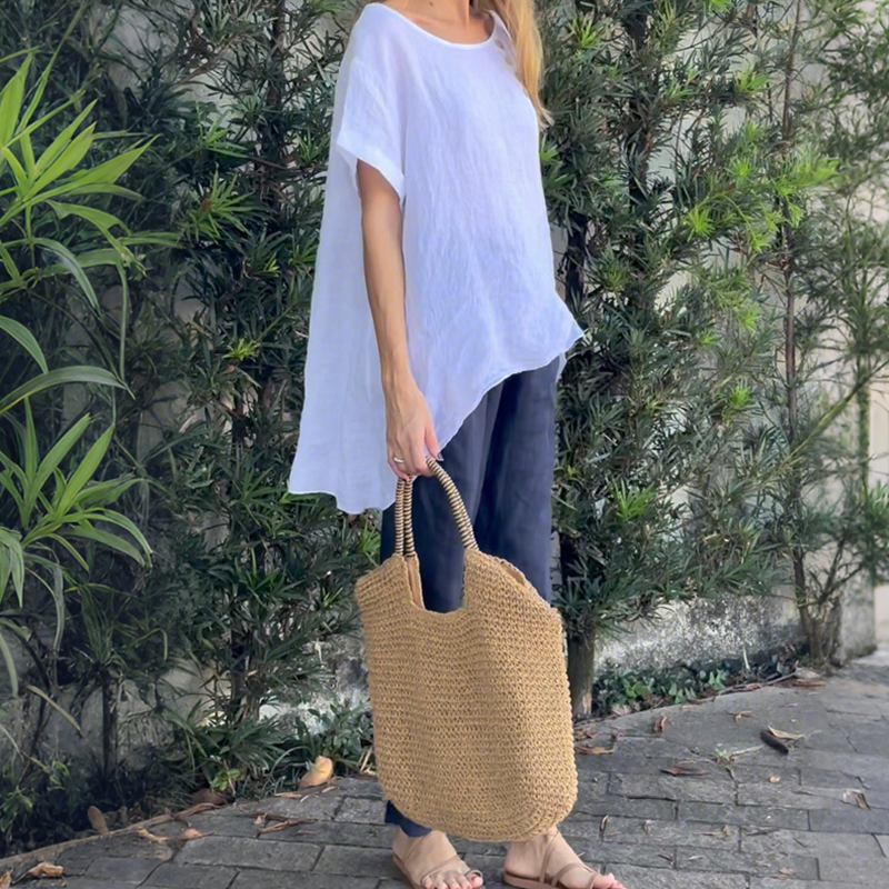 LUFTIGER, LOCKERER SITZ – Der weite, fließende Schnitt lässt Ihre Haut atmen. Kein Drücken, kein Zwicken – nur sanfter Fall, der sich vom Morgen bis zum Abend mit Ihnen bewegt. Die Luft kann frei zirkulieren, so bleiben Sie frisch, angenehm und reizfrei, selbst bei längerem Tragen.
