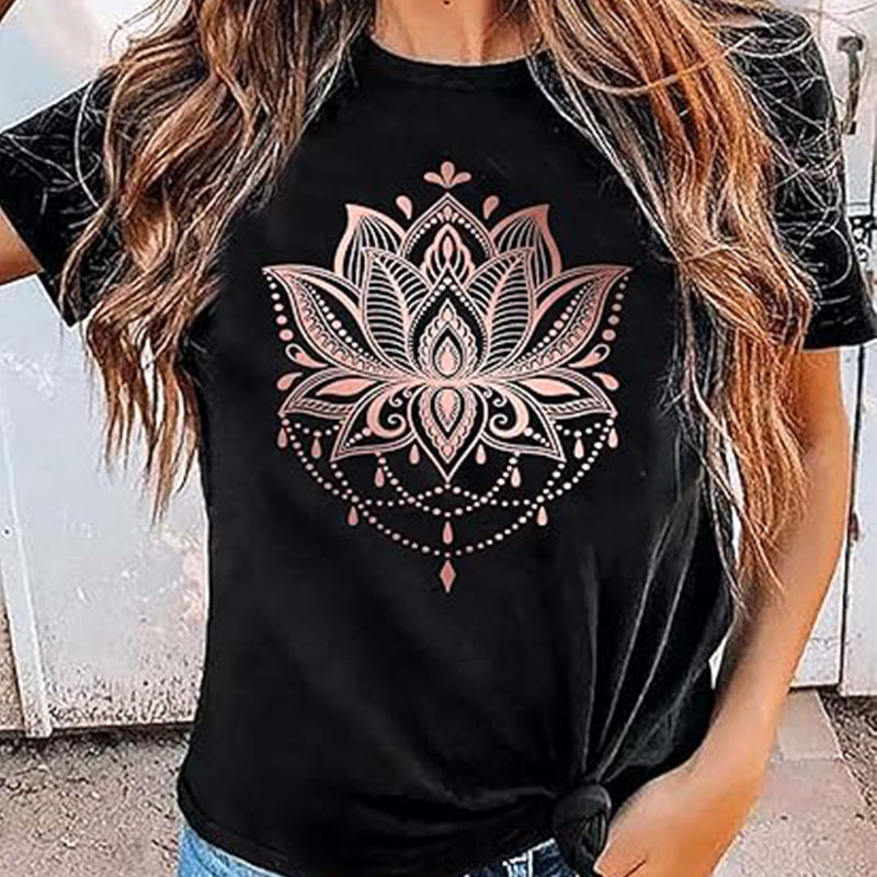 Lieferumfang: 1 x bedrucktes Damen-T-Shirt mit Rundhalsausschnitt und kurzen Ärmeln