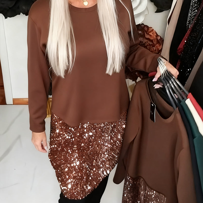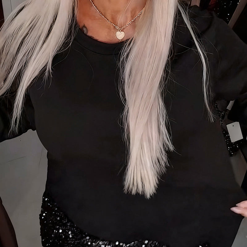 Glitzernder Paillettensaum – verleiht Ihrem Outfit einen Hauch von Glamour und fängt das Licht ein, sodass Sie auf Partys oder Abendveranstaltungen garantiert auffallen. Dieses Statement-Piece vereint stilvollen Tragekomfort mit festlichem Glanz.