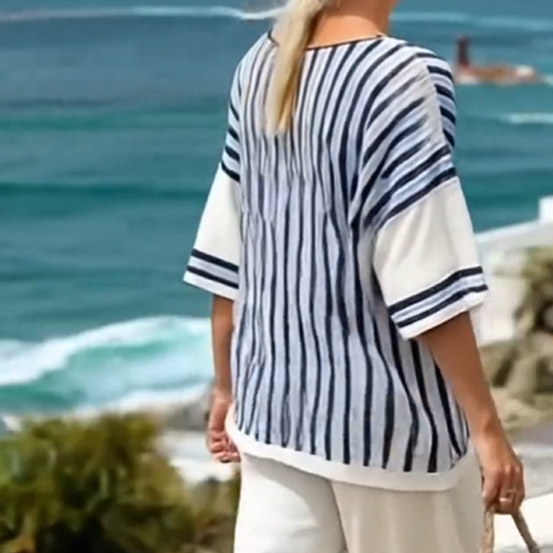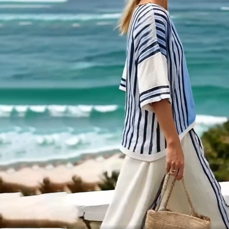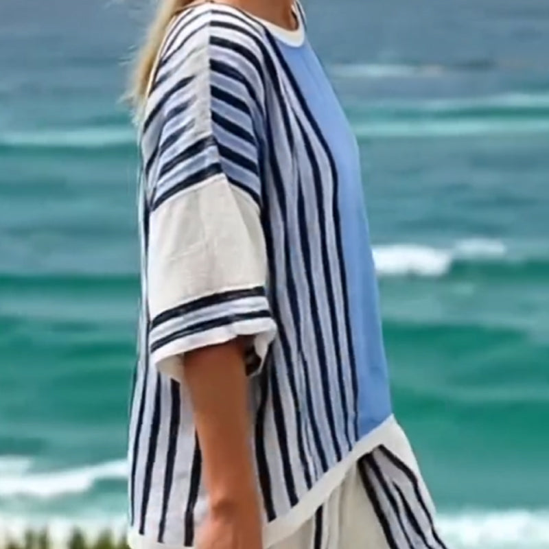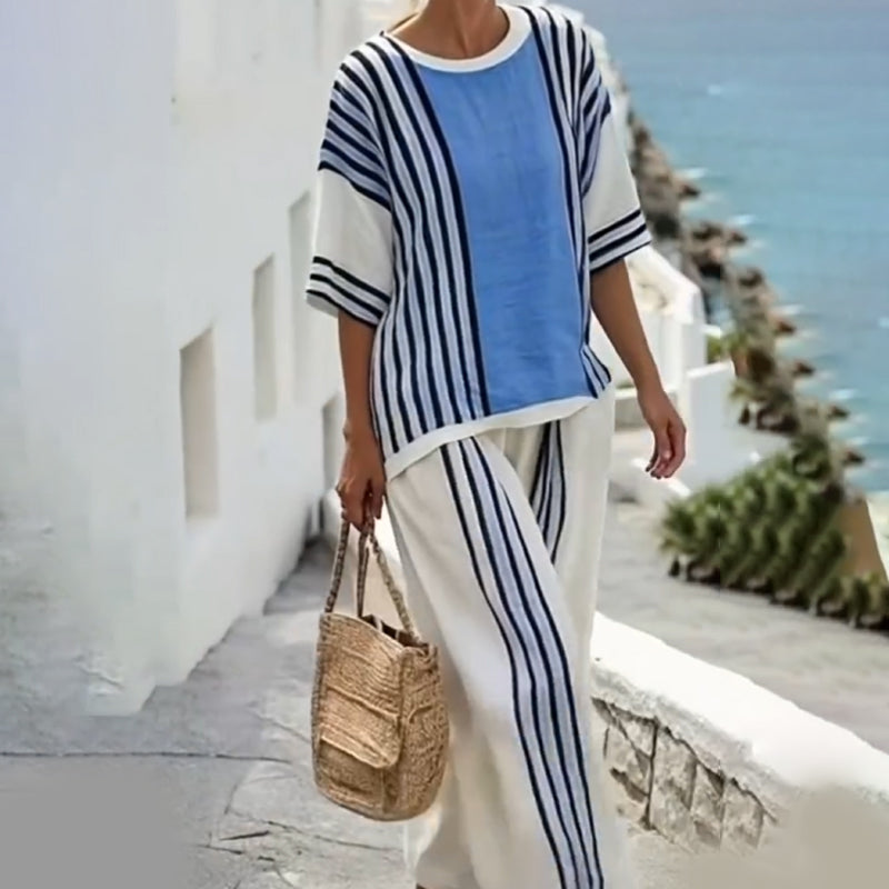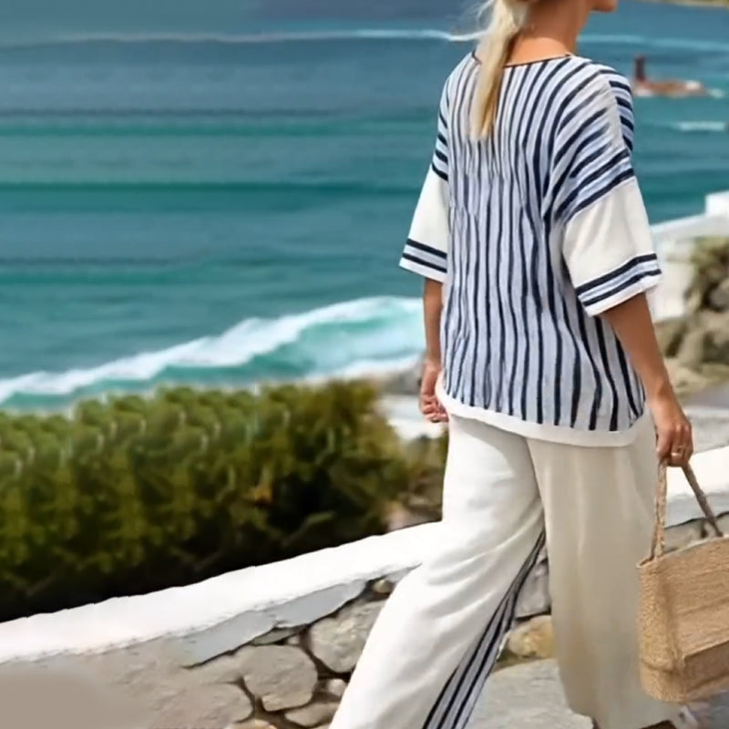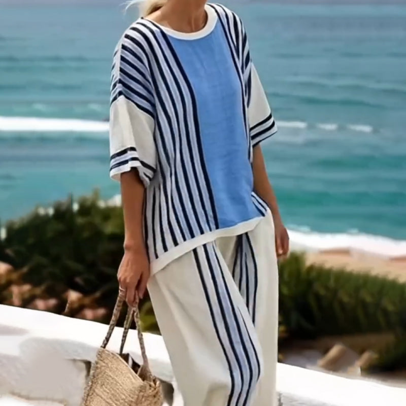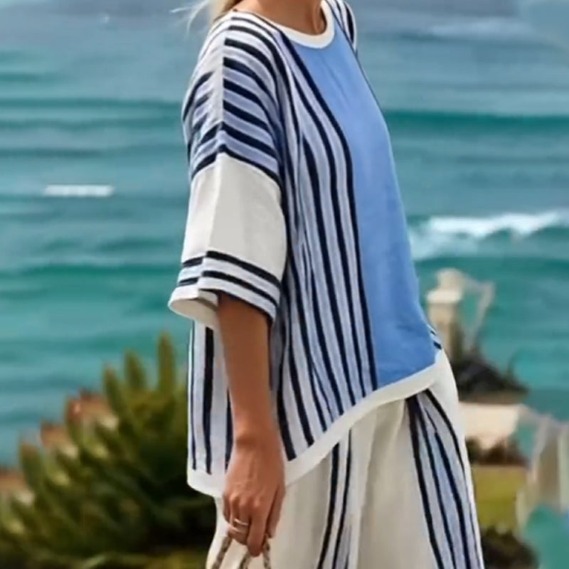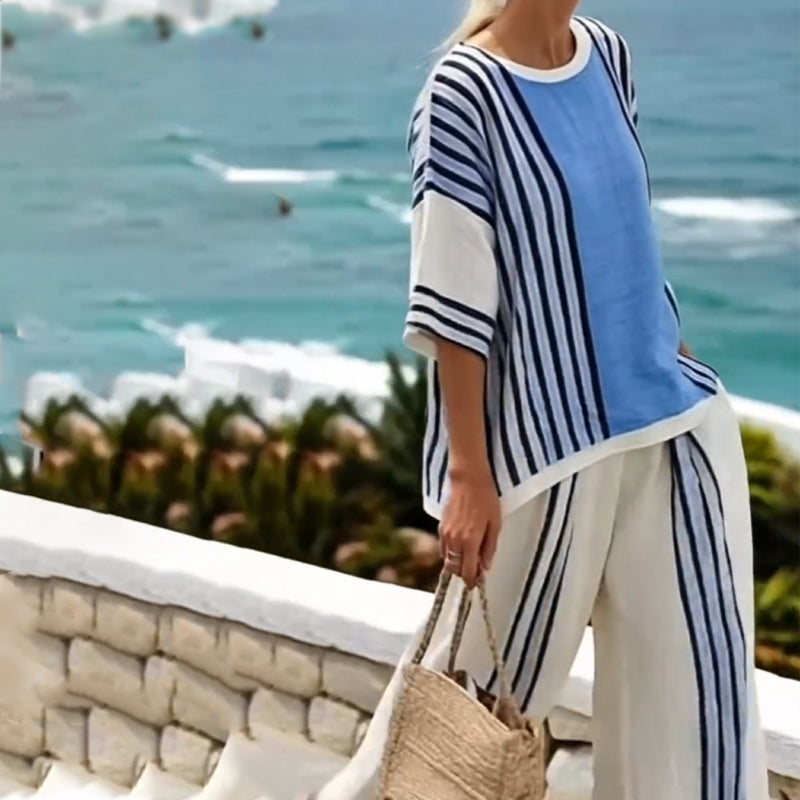Gestreifter Damen-Zweiteiler mit Oberteil und Hose
