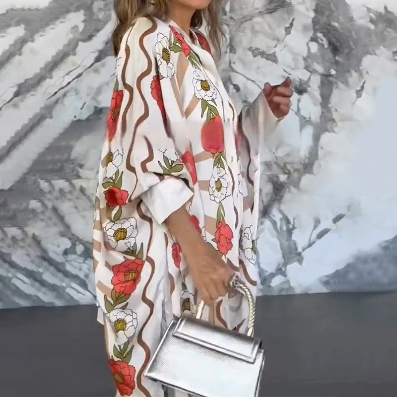 AUSDRUCKSSTARKES BLUMENMUSTER - Das Set besticht durch ein lebendiges, modernes Blumenmotiv, das alle Blicke auf sich zieht. Perfekt, um jedem Outfit Charakter und Frische zu verleihen.