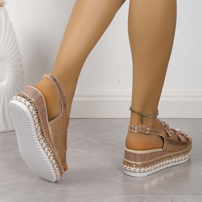 DICKE PLATTFORMHÖHE: Die dicke Sohle erhöht dezent die Höhe und bietet gleichzeitig ergonomischen Halt. Die Fersenoberfläche besticht durch durchdachte Designdetails, die den Schuh stilvoll und den ganzen Tag tragbar machen.