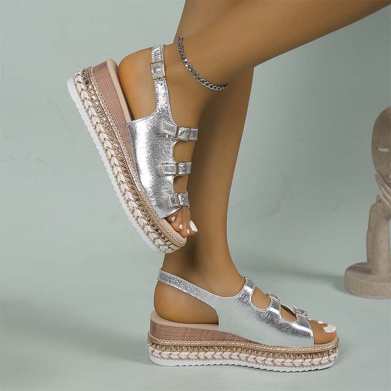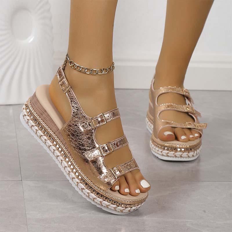 SCHICKES OBERDESIGN: Mit drei eleganten Schnallenriemen über dem Fuß, die modische und lässige Vibes vereinen und jedem Schritt eine lebendige Note verleihen.