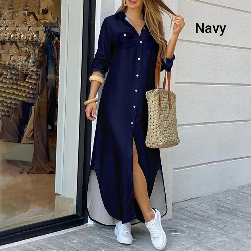 Veredeln Sie Ihren Stil mit dem trendigen Langarm-Hemdblusenkleid für Damen – eine vielseitige und schicke Ergänzung für Ihre Garderobe. Dieses Kleid vereint mühelos den Komfort eines Hemdes mit der Eleganz eines Kleides und bietet einen trendigen und entspannten Look für verschiedene Anlässe.