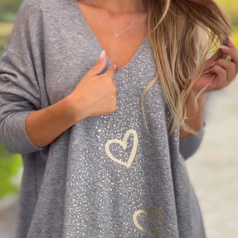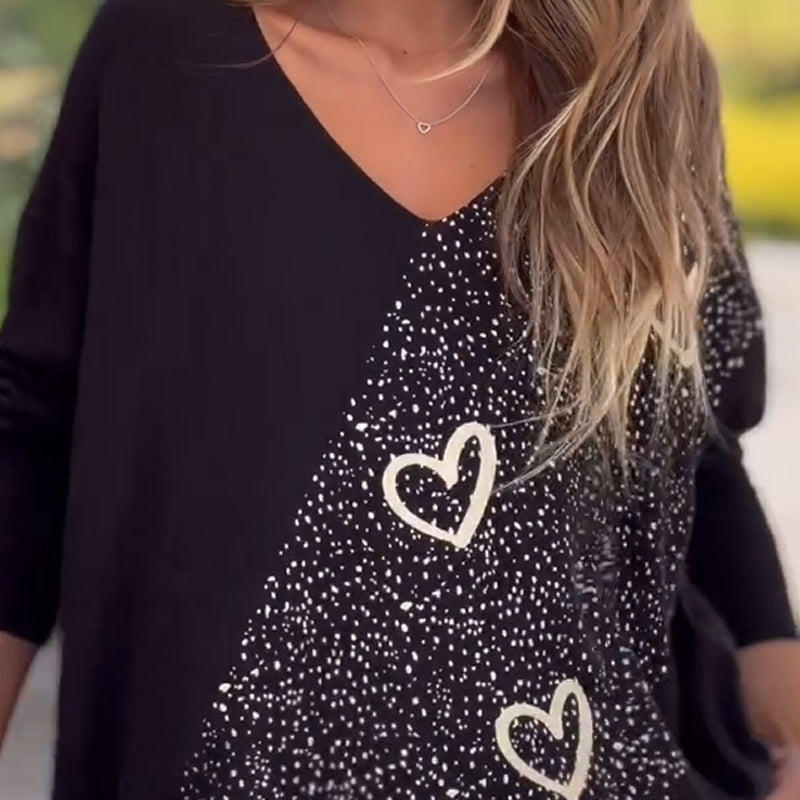 ROMANTIK TRIFFT AUF STRAHLENDE ELEGANZ – Das bezaubernde Herzmuster, das sowohl Augen als auch Herzen anspricht, wird Sie wieder verzaubern. Die kleinen, schimmernden Akzente verleihen dem Design einen Hauch von Glanz und heben Ihre Stimmung. Diese Tunika verleiht Ihrem täglichen Look Gemütlichkeit, Charme und eine Prise Liebe.