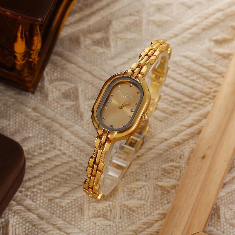 VINTAGE-ELEGANTES DESIGN: Die Uhr verfügt über ein ovales goldenes Zifferblatt mit feinen Skalen und Zeigern. Die wenigen kleinen Diamanten auf dem Zifferblatt verleihen ihr einen Hauch von Luxus. Das goldene Gliederarmband ist exquisit verarbeitet und verleiht der Uhr einen insgesamt retro-modischen Look, der Ihren Charme bei jeder Gelegenheit unterstreicht.