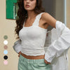 Damen Sport-Tanktop mit breiten Trägern und quadratischem Ausschnitt, kurzes Blumenmuster