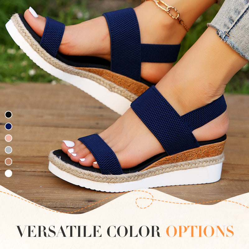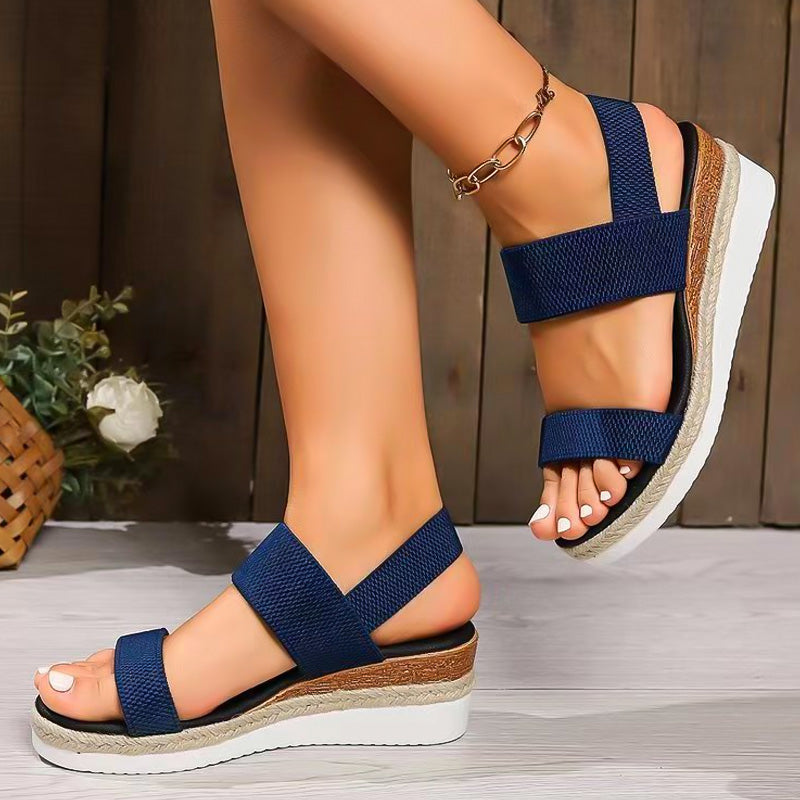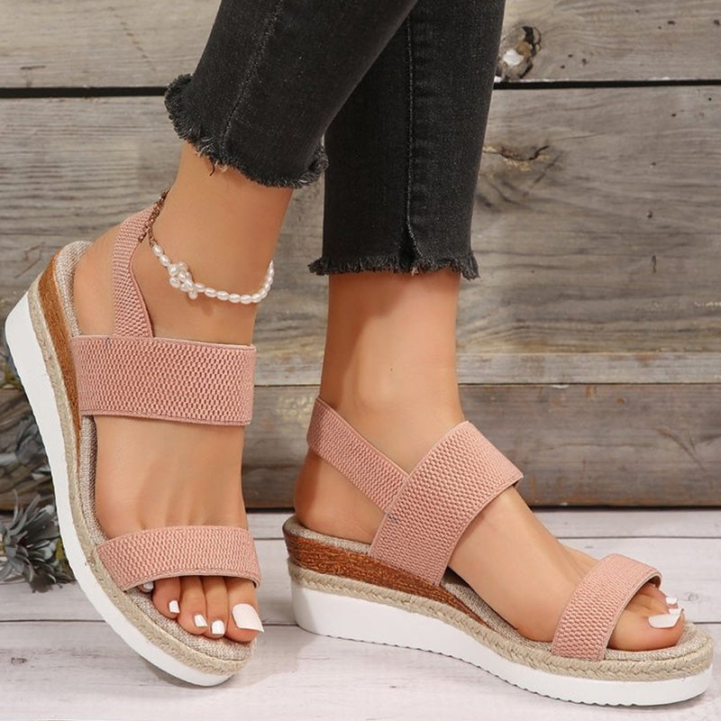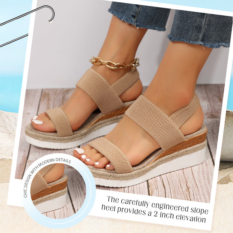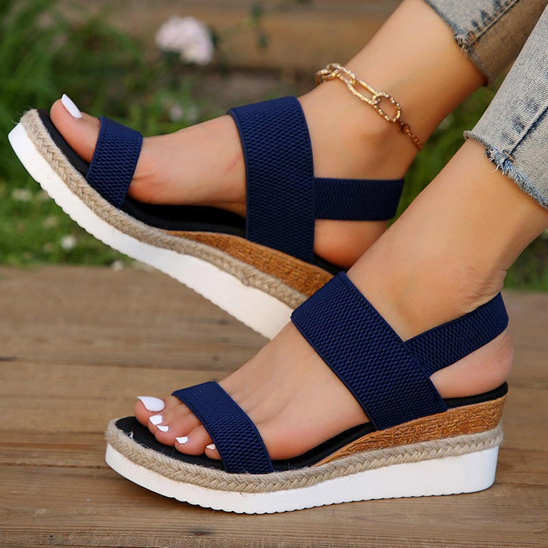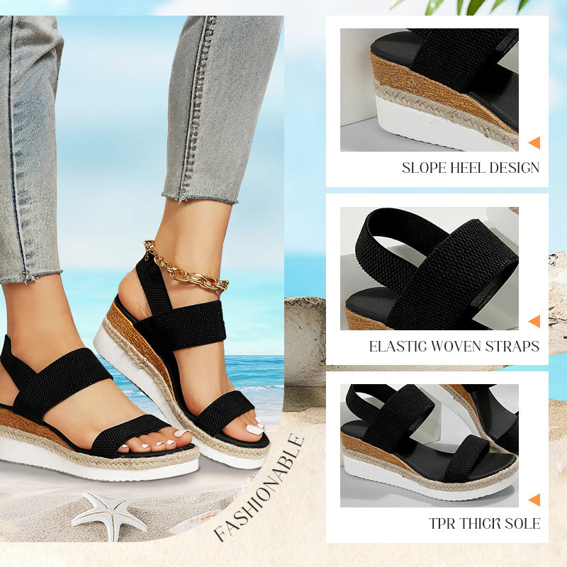 Damen-Sandalen mit gewebtem Gummiband und dicker Sohle und schrägem Absatz