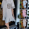 Damenmode gestreifte Patchwork-Hemdkleider mit Leopardenmuster