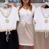 VIELSEITIGES UND ZEITLOSES DESIGN: Die neutrale Farbkombination aus Weiß (Oberteil) und Creme/Schwarz (Rock) macht dieses Kleid unglaublich vielseitig. Sie können es für einen Abend mit High Heels und etwas Schmuck aufpeppen oder für einen lässigen Tag mit Sandalen und einer Jeansjacke abmildern.