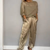 🔥Heißer Verkauf - 49 % Rabatt🔥Zweiteiliges Set aus Rundhalsoberteil und Hose für Damen