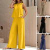 Zweiteiliger Damen-Zweiteiler in Volltonfarbe, Rundhals-Weste und Hose mit weitem Bein